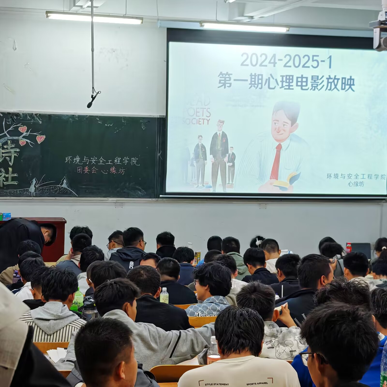 团委学生会心缘坊在10101教室放映了心理电影《死亡诗社》。