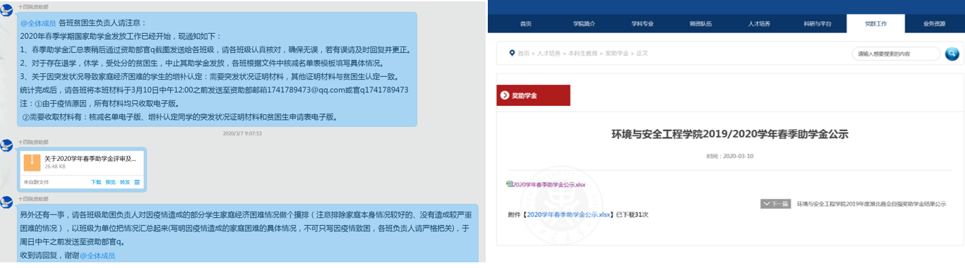 通过线上平台展开本次活动,活动内容包含了3个方面,分别是统计家庭经济困难学生的增补名单、家庭经济困难学生信息的核对,以及对本次疫情期间导致家庭经济困难的学生进行摸底统计。学生科按照通知要求严格审核发放学生信息,认真核对发放账户,规范编制发放名册,确保名册完整、准确。直至3月10日,所有统计摸底工作完全完成,春季助学金名单在官网公示。