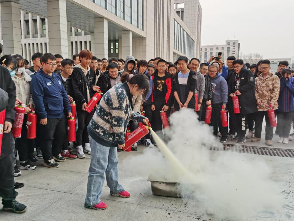 党委副书记李云的主持下,本次演习第二阶段拉开序幕。首先,陈天麟教官向同学们讲解了消防“三懂四会”技能,即:懂本单位或岗位火灾的危险性、懂预防和扑救火灾的基本方法、懂自救逃生的方法;会报火警、会使用灭火器材、会扑救初期火灾、会组织人员疏散。并从学生心态、学生思想、逃生方式等方面对本次演习中出现的问题进行点评与指正。最后,在教官的带领下,同学们亲自体验了使用灭火器的全过程。
