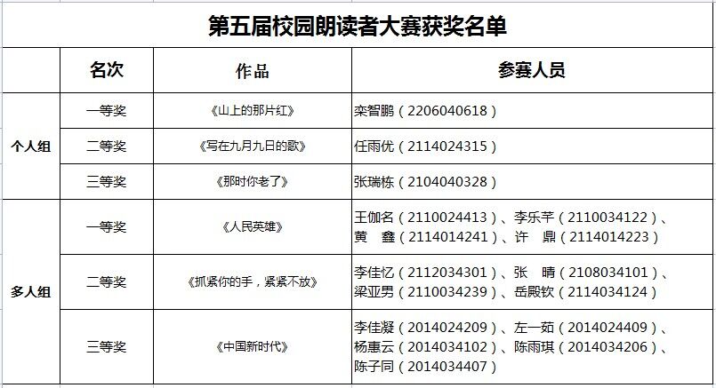 “校园朗读者大赛”通过举办系列活动,给语言爱好者提供了更多展示自我的平台;同时加深了同学们了解中国文化,用声音来传递情感,展示文化自信!让书香满溢心间,让文化植根校园,让青年学子在浓厚的读书氛围中锤炼品德修为、厚植文化底蕴!