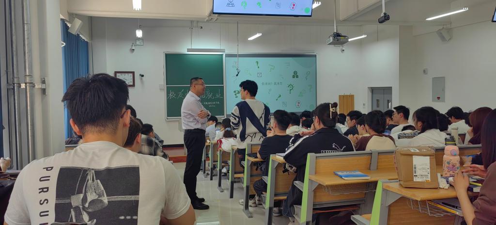 李诚首先以“环境工程职业规划”为主题,从“你来问,我来答”引发同学们的思考并提出心中的疑惑。然后,他以自身经历为例,进一步为同学们介绍了专业未来职业的选择规划以及如何在入职后尽快融入工作岗位提升自己。这无疑为同学们对于环境工程专业的前景增添了信心,也帮助同学们铺垫了之后的就业方向和奋斗目标。最后,李诚热情地邀请同学们在假期期间加入他的企业进行实习探索,从而进一步体会到环境工程专业的美好前景,更加坚定自己对未来的选择。