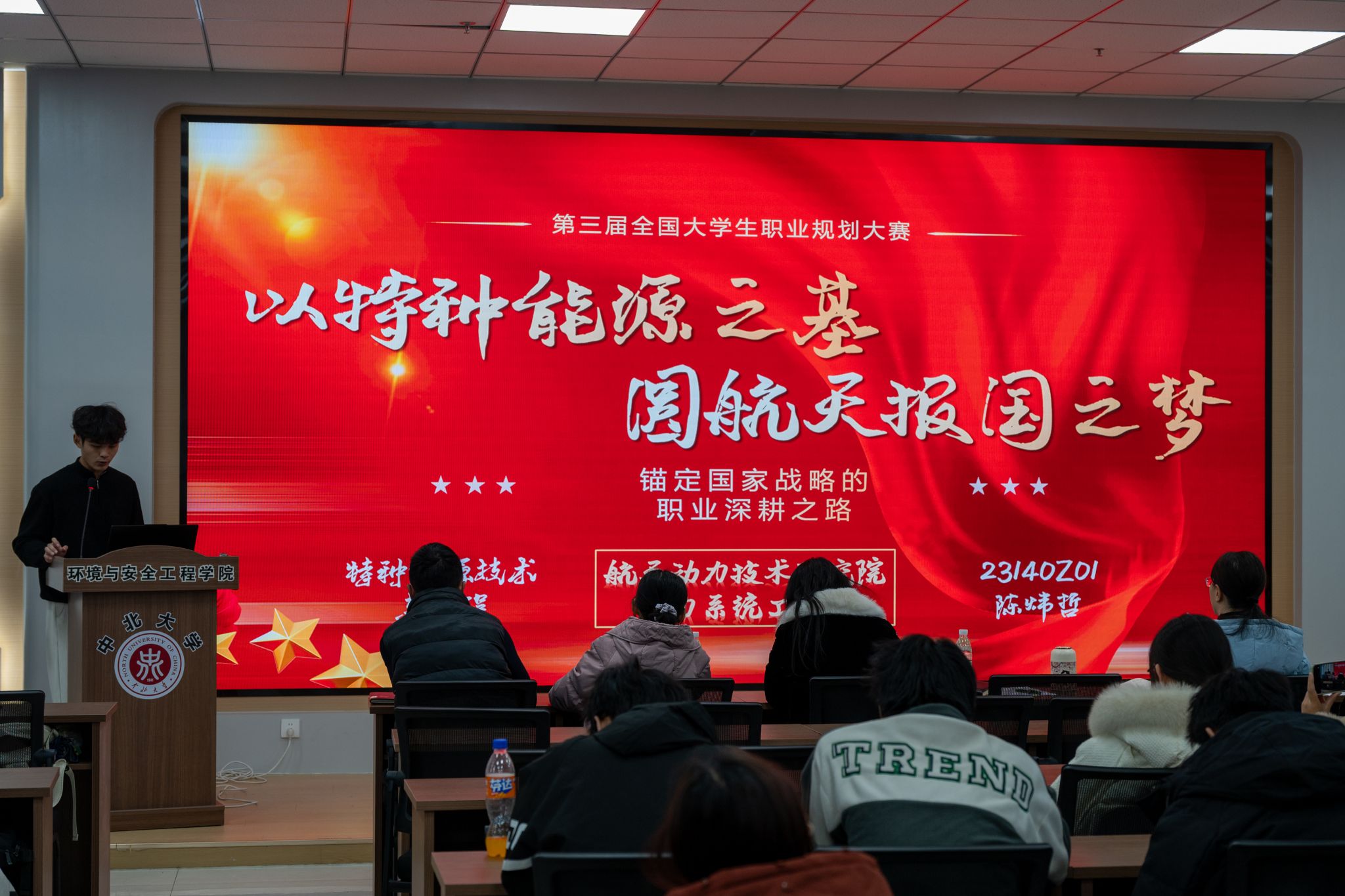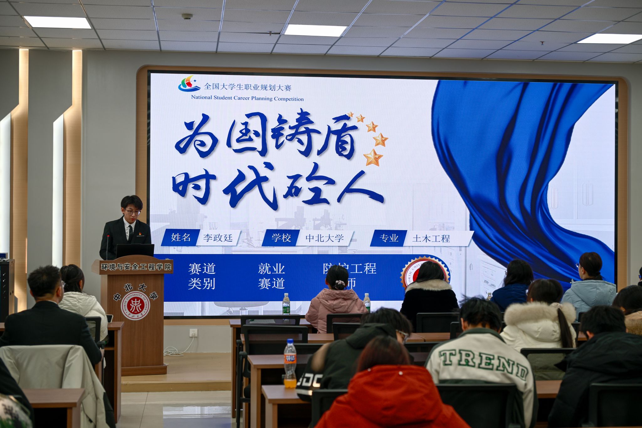 比赛现场氛围热烈,14位参赛同学以饱满的热情、自信的姿态登上讲台,开启了一场关于未来职业的精彩畅想。他们侃侃而谈时逻辑清晰,目光灼灼间满是坚定,用详实的规划方案描绘出一幅幅未来职业发展的清晰蓝图。面对评委与观众,选手们沉稳干练、从容不迫,将个人职业路径从短期目标到长期规划拆解得细致入微,既展现了对环境与安全工程专业的扎实认知,又凭借清晰的规划框架、独到的行业见解,赢得了台下阵阵掌声与喝彩,充分彰显了当代青年学子的专业素养与进取精神。