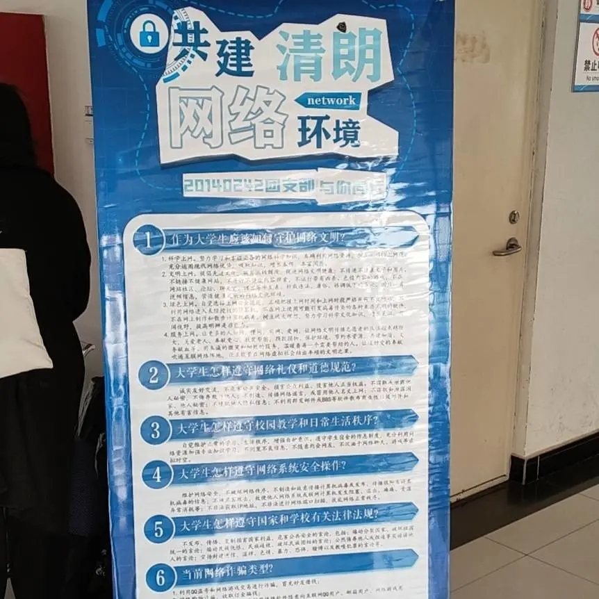 会后,于文韬六、七一楼大厅放置了“清朗网络,我们在行动”的宣传海报。