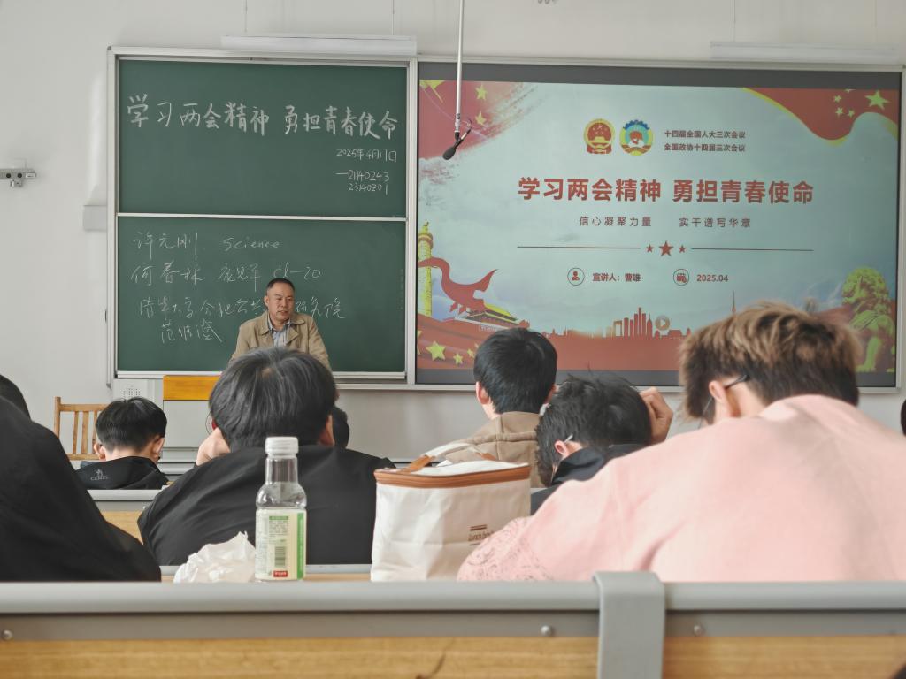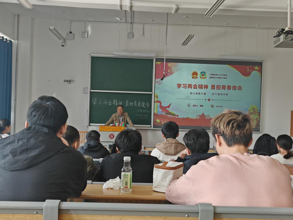 23140Z01班联合21140243班,在17102教室举办“学习两会精神 勇担青春使命”主题班会,邀请曹雄院长主讲,两班全体同学参与。